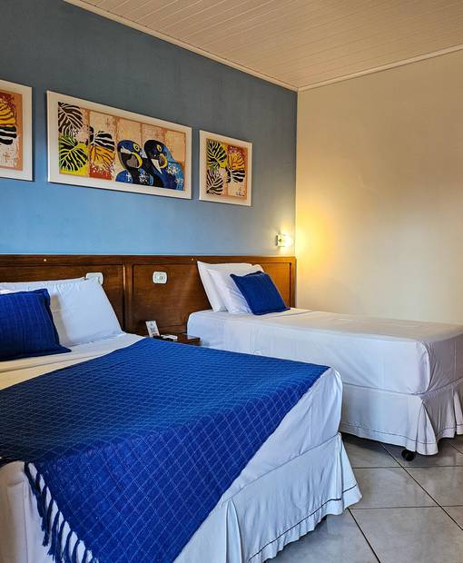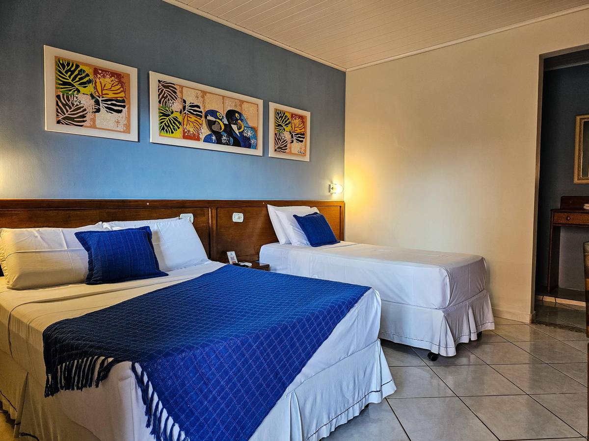 dispõem de quartos confortáveis e bem equipados, além de ampla área de lazer com piscinas, salão de jogos, churrasqueira e jardins para relax, tornando seus dias em Miranda mais agradáveis e completos. Oferecemos ainda café da manhã incluso na diária e nosso restaurante está aberto para o jantar servido a la carte.